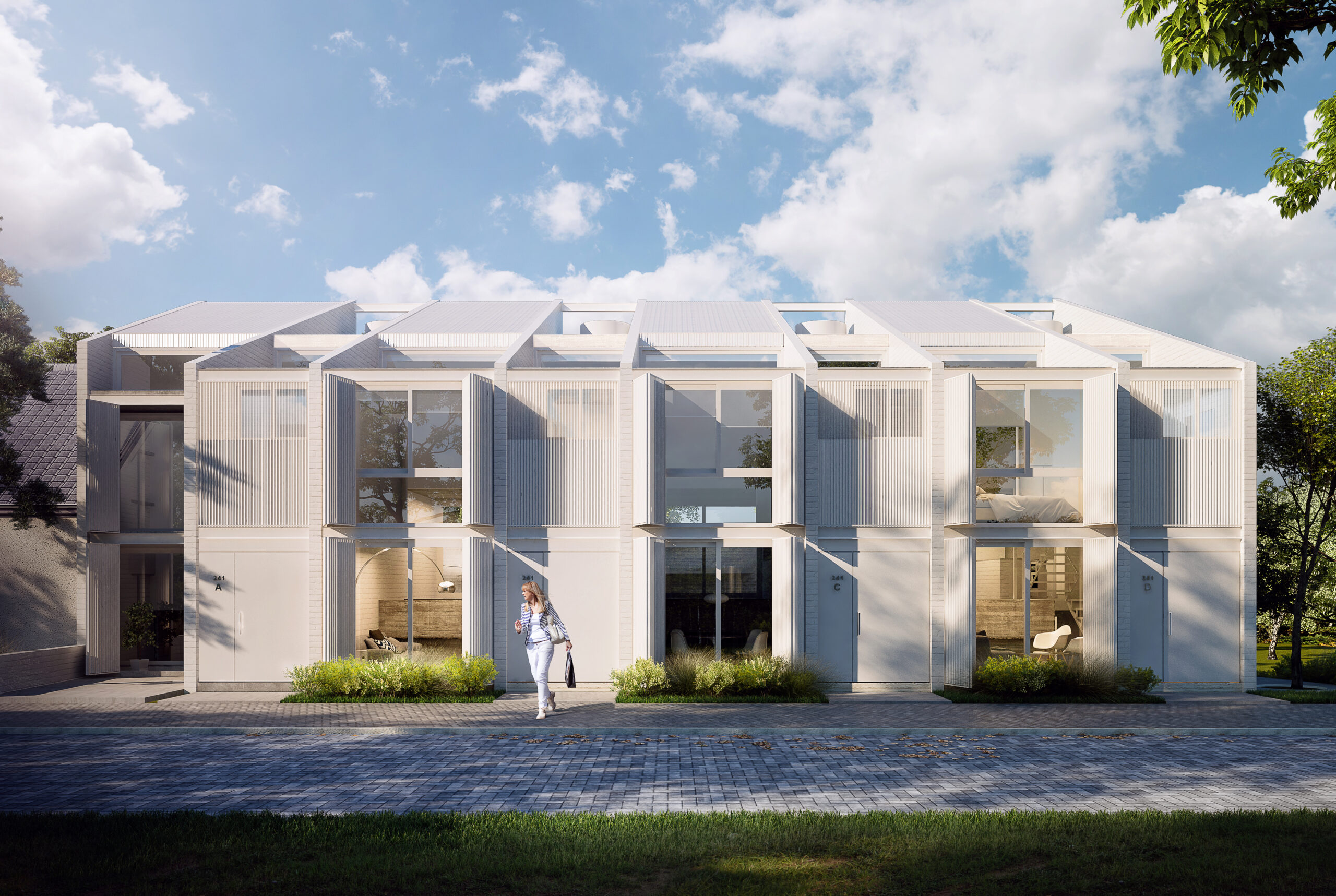- Concepción de la volumetría en color blanco al igual que la carpintería de aluminio.