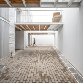 - Composición tipológica de usos de vivienda superpuestos y desfasados, que conforman dos bloques separados, pero con la circulación vertical como fuelle para vincular ambos cuerpos.